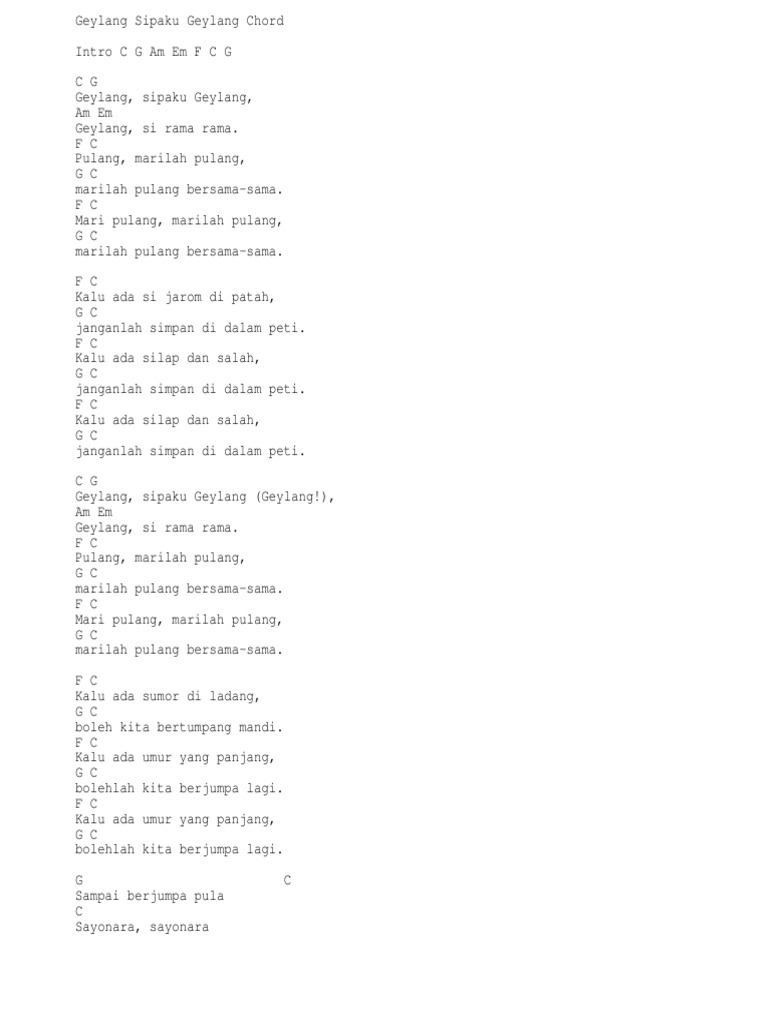 Not Angka Gelang Sipaku Gelang Sekitar Musik