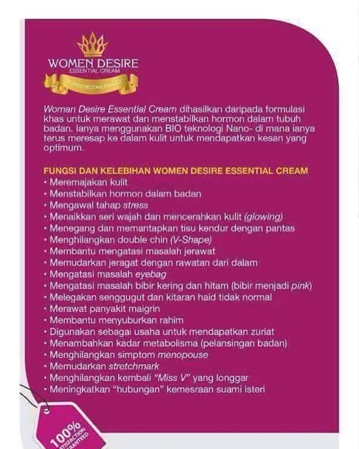 Rahsia Jelita Awet Muda Cara Penggunaan Women Desire Essential Cream