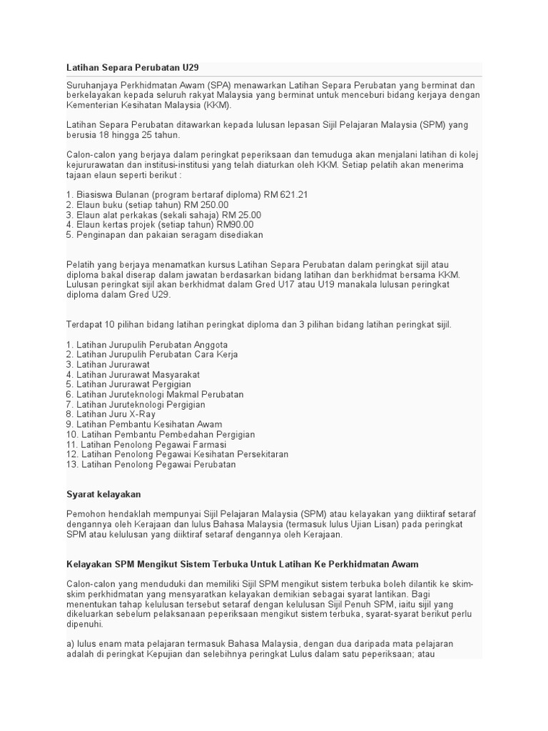 Latihan Separa Perubatan Bertaraf Diploma Gred U29
