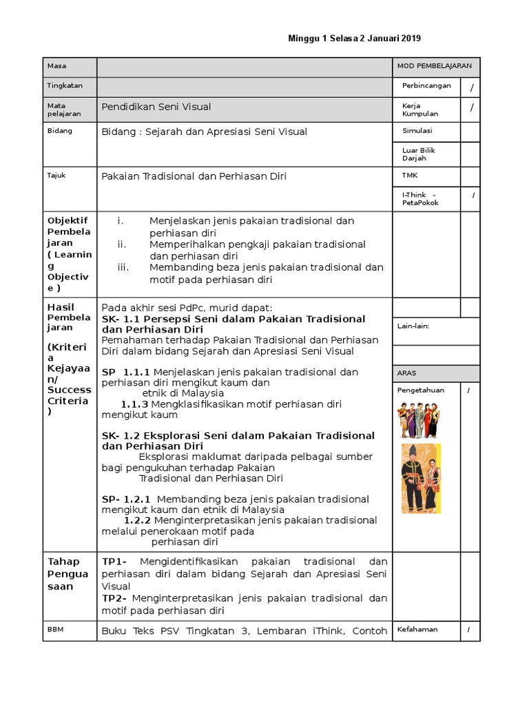 Rph Pakaian Tradisonal Dan Perhiasan Diri Minggu 1 Dan 2 Doc